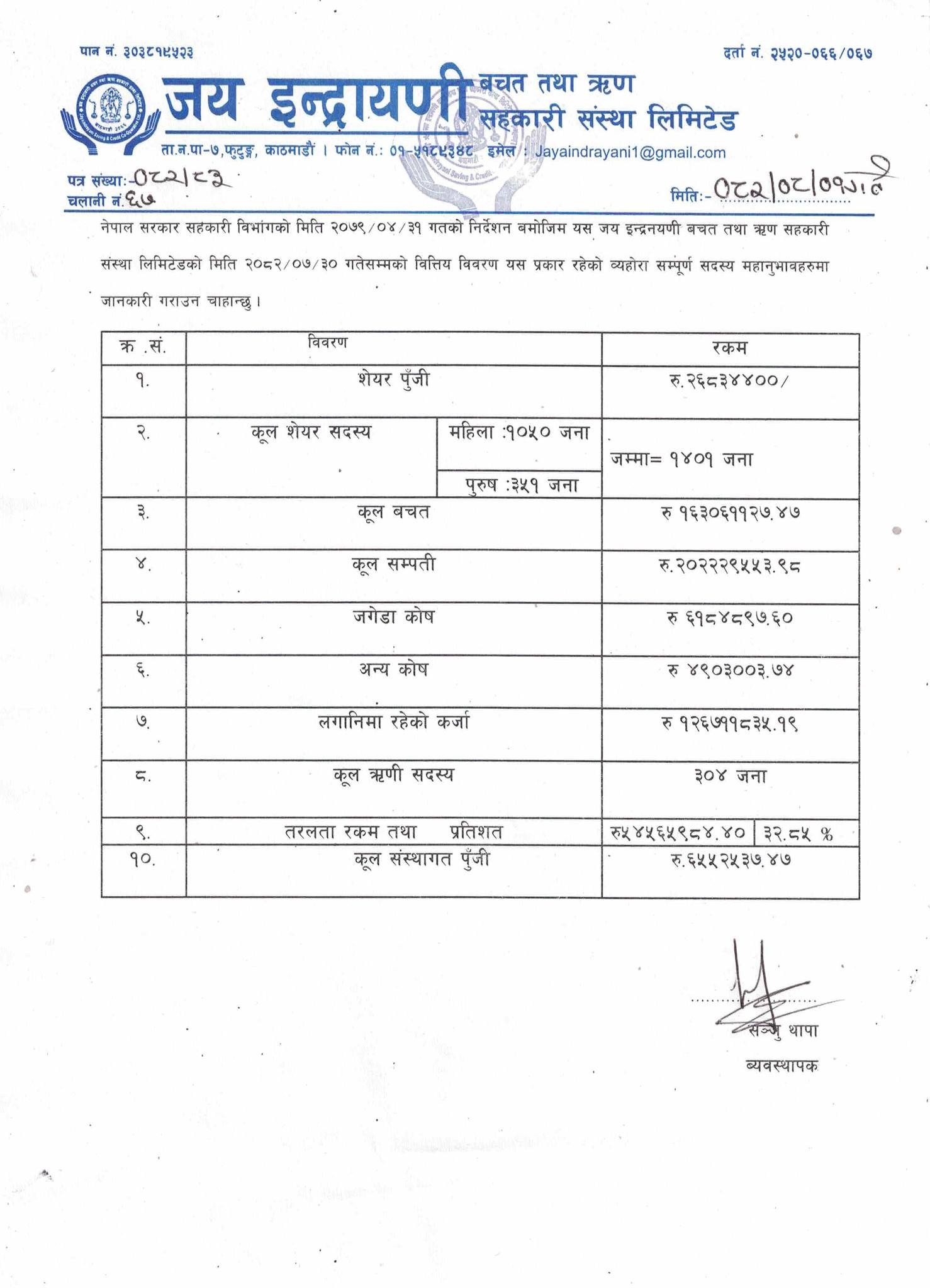 शुरुमा २८जना शेयर सदस्य मिलेर स्थापित गरी सदस्यहरु विच वचत तथा ऋणको कारोवार गर्ने र सदस्यहरुको आर्थिक विकासमा समेत टेवा प...